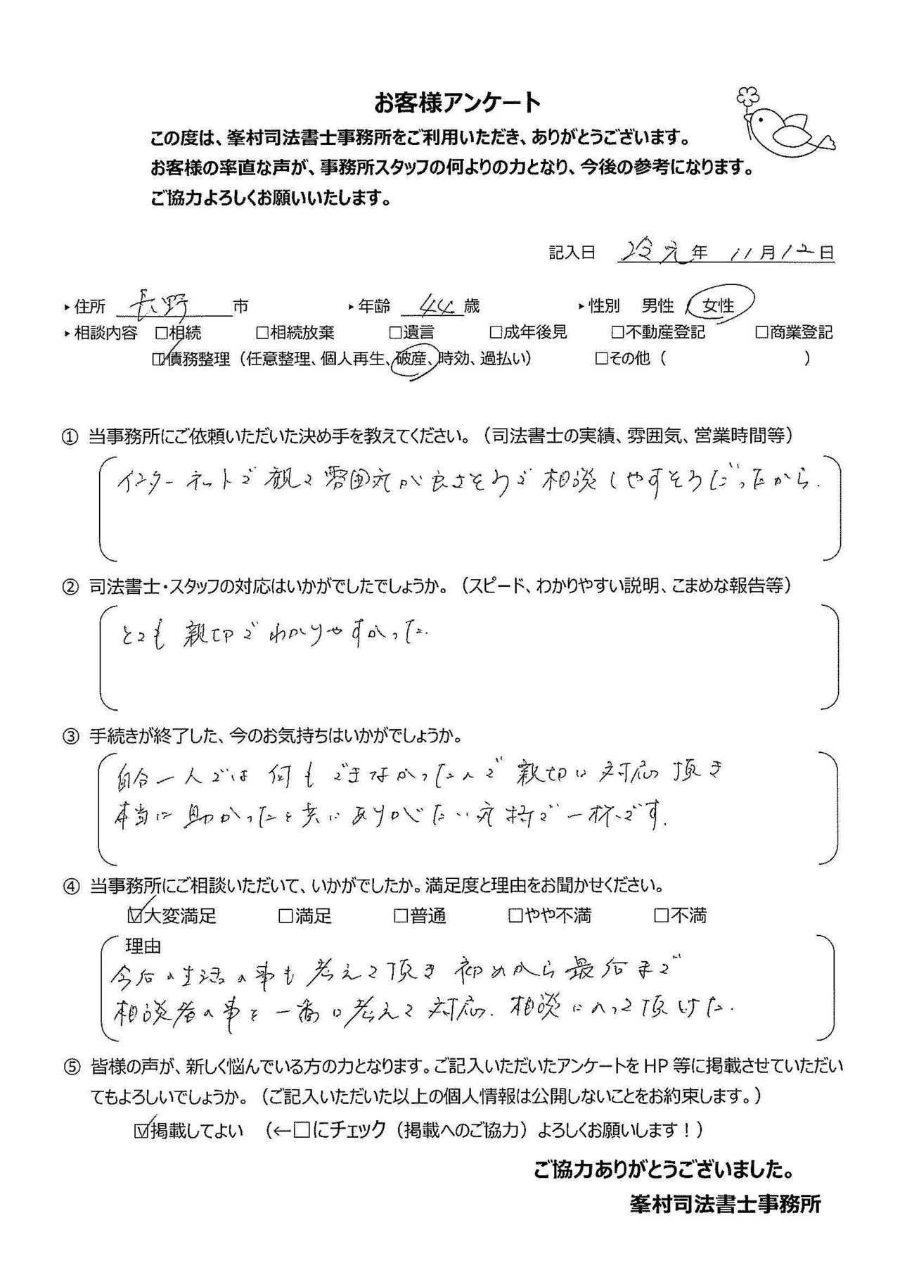 Aネットで債務整理をどの事務所で行うか調べて峯村司法書士のホームページを見て、実績とかお客様のコメントとかを見て、ここにお願いしようと決めました。